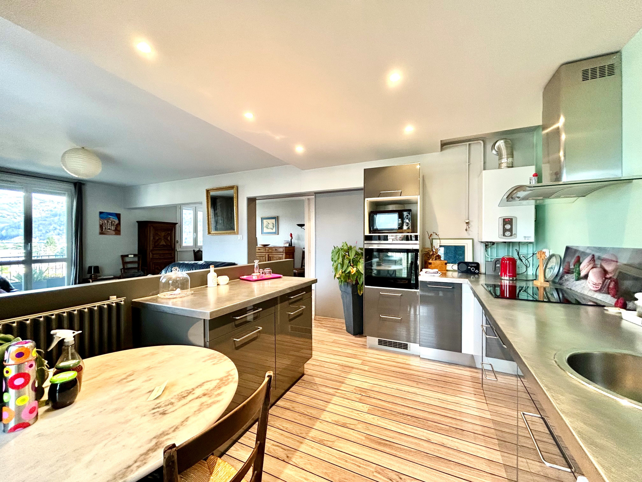 Résidence Pré Peysande, rue Jean-Jacques Rousseau, appartement de type T5 de 104,5m² au septième étage avec ascenseur. Il comprend une entrée, une pièce de vie de 33m² avec cuisine ouverte aménagée et équipée et loggia attenante, trois chambres entre 10.7m² et 13m², une salle d'eau, une salle de bains, un dressing et des rangements. En très bon état général, ce bien dispose d'un balcon de 5m², d'une vue dégagée sur Belledonne et de prestations de qualité. Complètent ce bien : une cave, une place de parking et un garage. Charges annuelles : 1240€ Copropriété de 182 lots principaux Prix de vente : 240 000€ honoraires charge acquéreur. Les informations sur les risques auxquels ce bien est exposé sont disponibles sur le site Géorisques du Gouvernement.