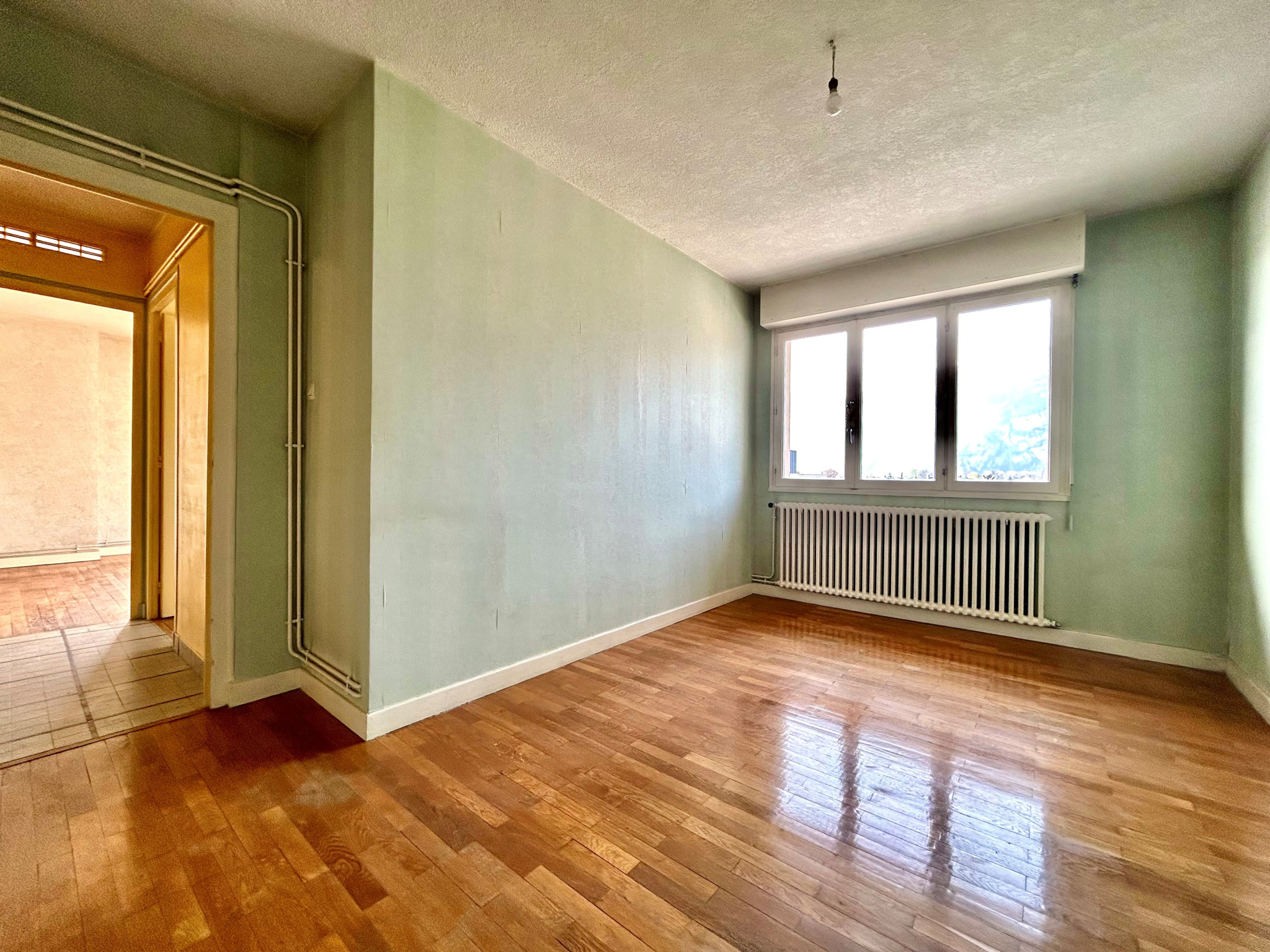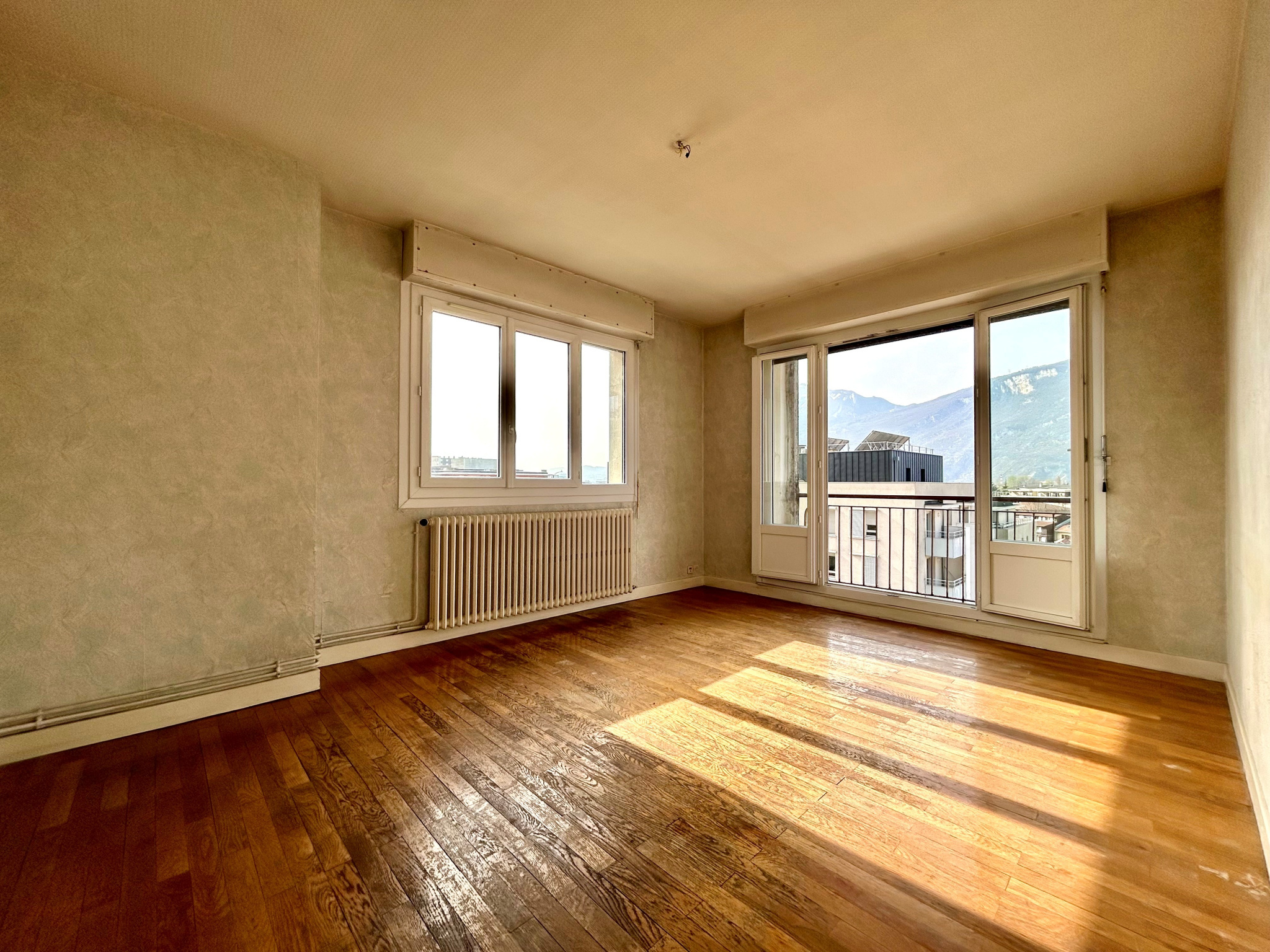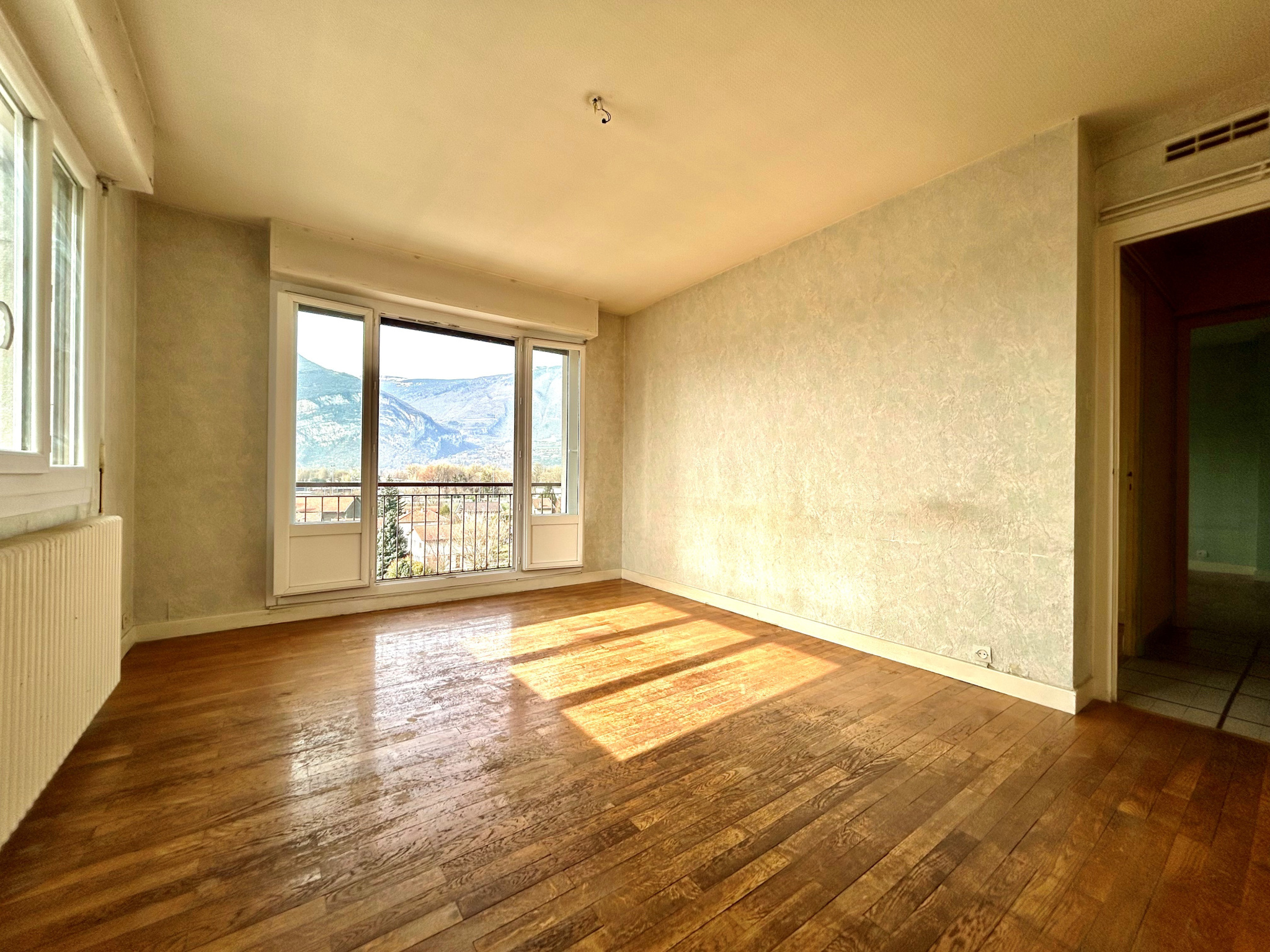 SAINT MARTIN LE VINOUX - Avenue du Général Leclerc, appartement de type T3 de 63m² au dernier étage sans ascenseur d'une petite copropriété. Il comprend une entrée avec rangement, une cuisine indépendante, un séjour donnant sur un balcon de 6.5m², deux chambres, une salle de bains et un WC. Fait rare pour un appartement, il bénéficie d'une triple exposition, sans aucun vis-à-vis et avec une vue dégagée sur les massifs. Une cave de 5m² en sous-sol et la possibilité de stationner à l'arrière de l'immeuble. Ce bien nécessite des travaux de rénovation (cosmétiques et énergétiques). Il est enfin situé à proximité des écoles, commerces et transports. Charges annuelles : 850€ Taxe foncière : 1196€ Copropriété de 20 lots principaux. Prix de vente : 75 000€ honoraires charge vendeur. Les informations sur les risques auxquels ce bien est exposé sont disponibles sur le site Géorisques du Gouvernement.