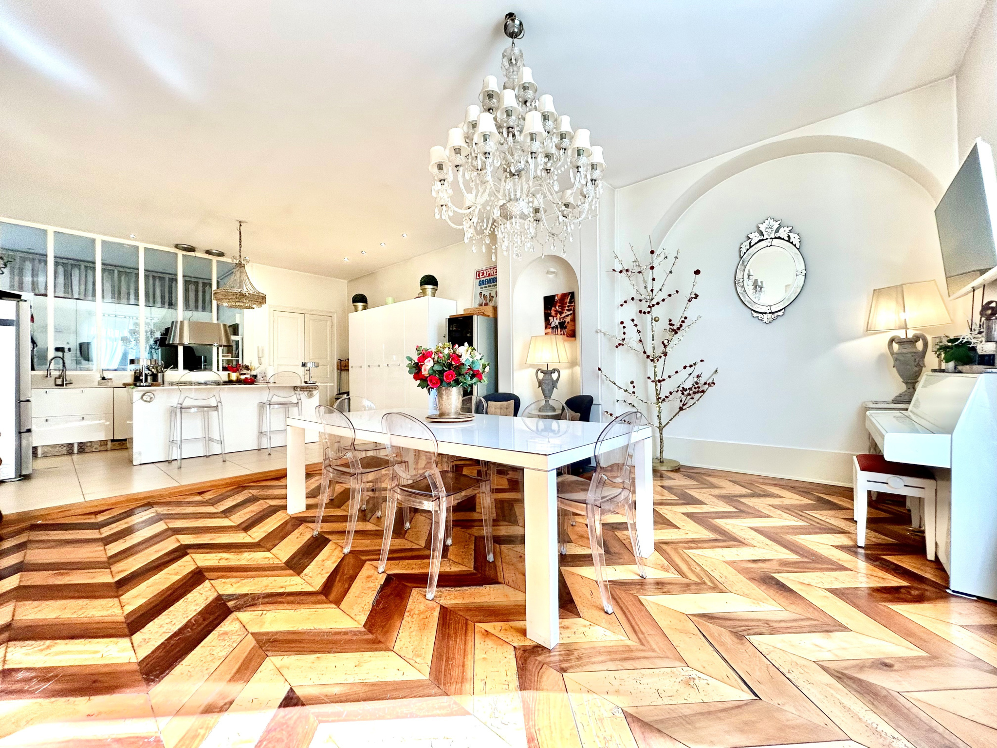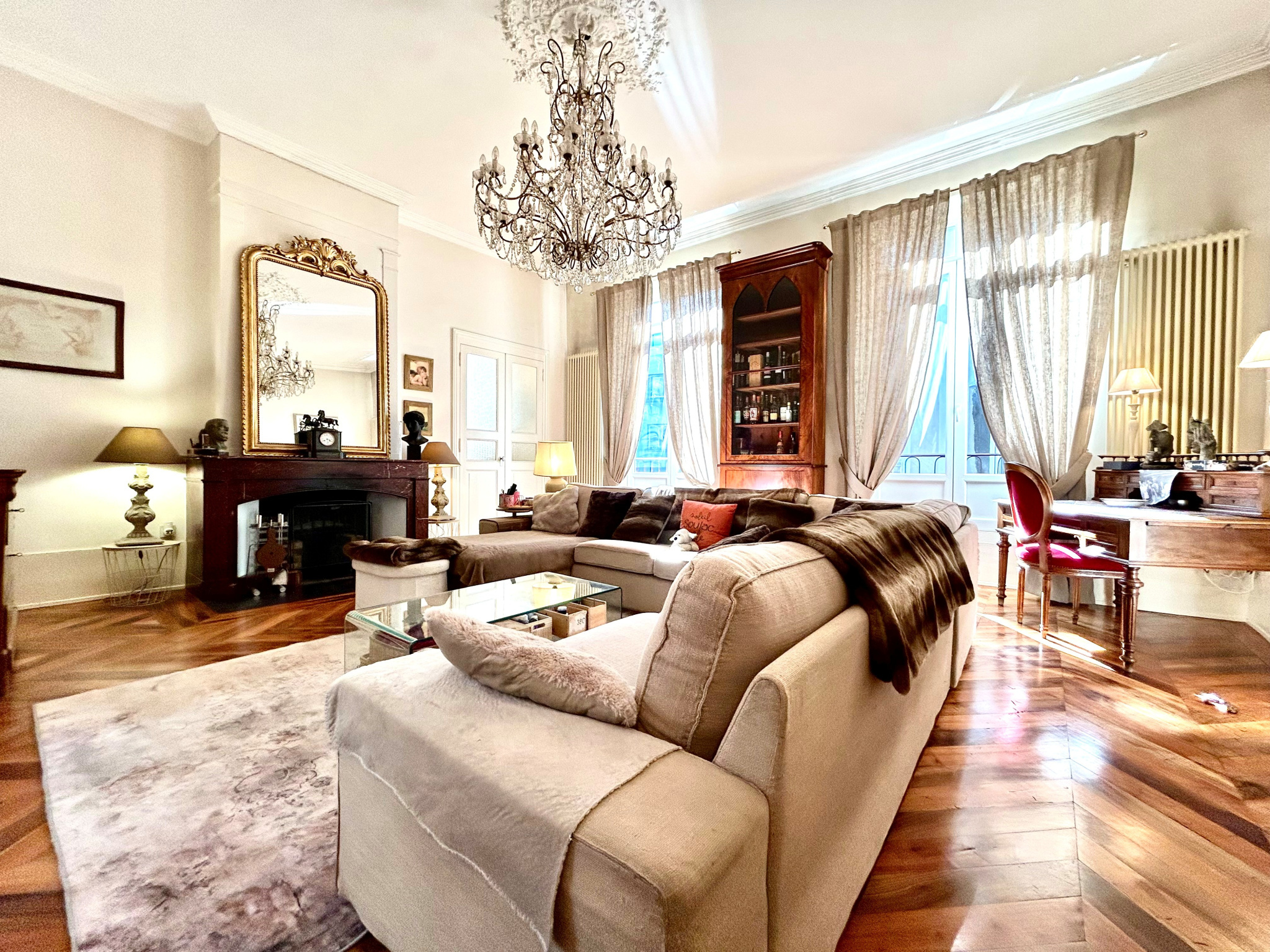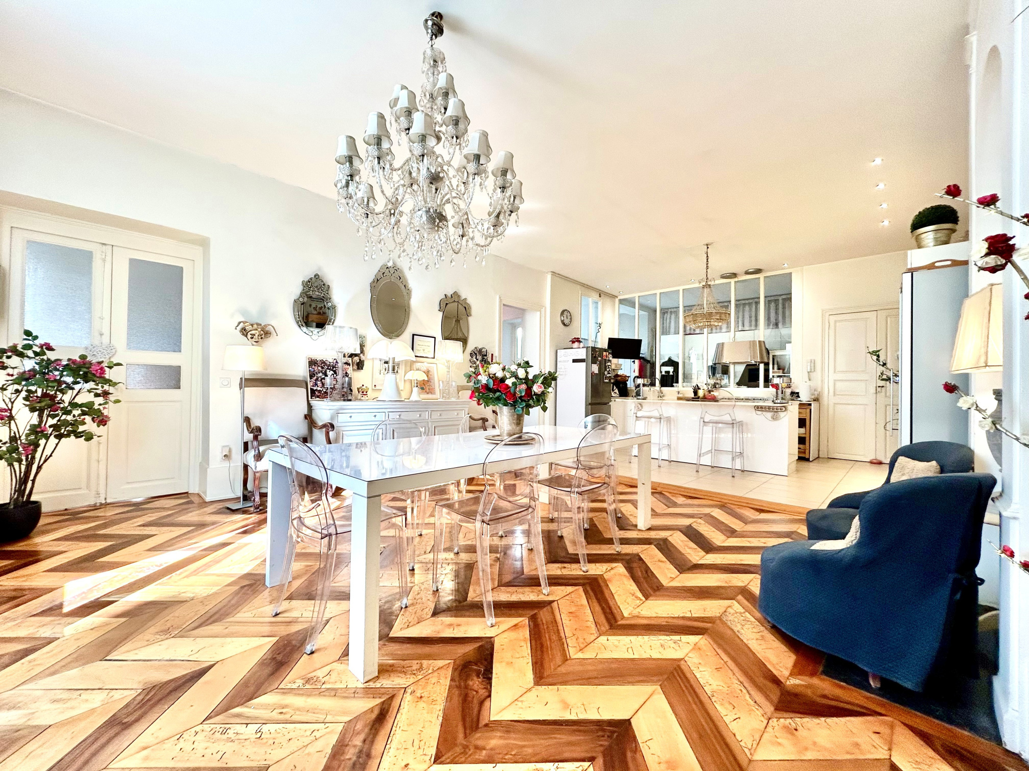 Grenoble : Dans un ancien hôtel particulier, au deuxième et dernier étage, appartement de type T7, en duplex, d'une surface de 260m² (285m² au sol) Il allie tout le charme de l'ancien (hauteur sous plafond de 3m, cheminées, parquet Hache, point de hongrie...) avec le confort moderne et des prestations de qualité. Le premier niveau se compose de pièces aux dimensions généreuses : salle à manger avec cuisine ouverte aménagée et équipée, salon, deux chambres, salle de bains, buanderie et chaufferie. A l'étage, trois autres chambres avec deux salles d'eau privatives. C'est un très bel appartement familial où l'on se sent instantanément bien. Si son positionnement central donne accès rapidement aux commerces, transports et établissements scolaires, il a comme atout majeur d'être totalement isolé des nuisances sonores. Charges annuelles : 2300€ Taxe foncière : 2262€ Copropriété de 11 lots principaux Prix de vente : 679 000€. Les informations sur les risques auxquels ce bien est exposé sont disponible sur le site Géorisques du Gouvernement.